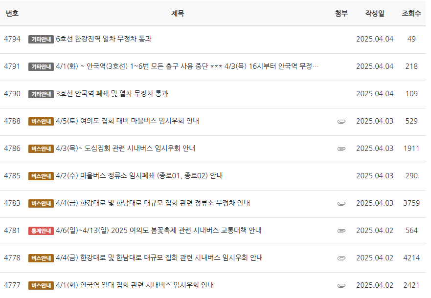 - 서울교통공사 공지사항