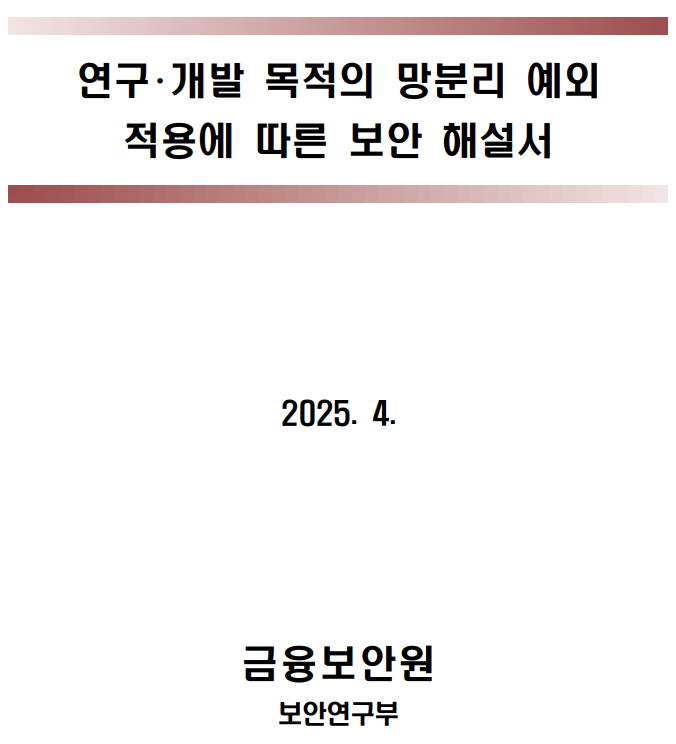 - 금융보안원. 「연구·개발 목적의 망분리 예외 적용에 따른 보안 해설서」 (2025년 4월)
