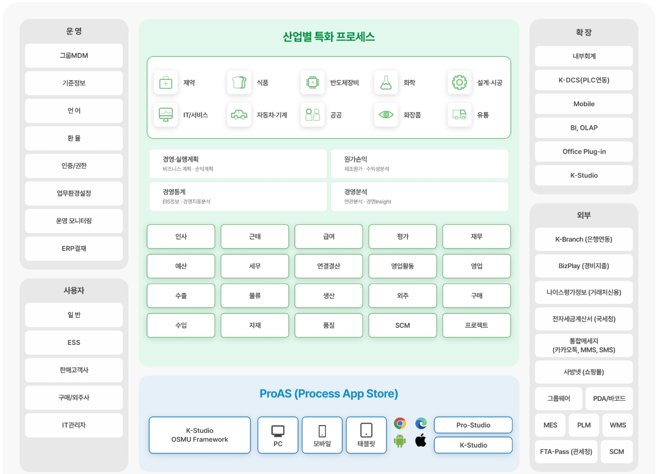 회계, 인사, 자산, 구매 등 여러 기능이 서로 연계되어 운영되며, 내부 처리 로직이 극도로 복잡하다.