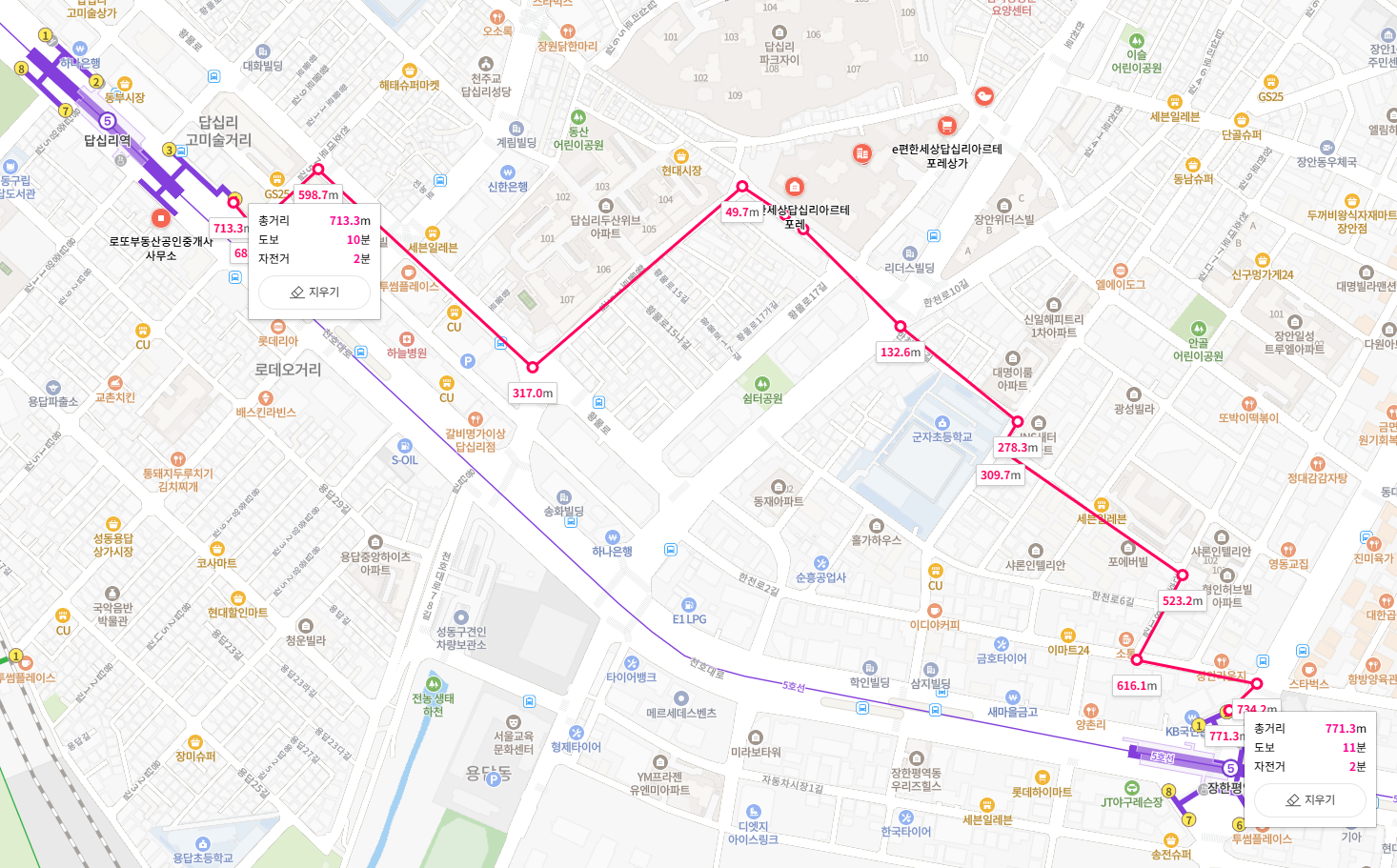 - 대중교통: 지하철 5호선 장한평역·답십리역 도보 이용 가능 (최단거리 기준 답십리역 3번출구 713m, 장한평역 1번출구 770m)